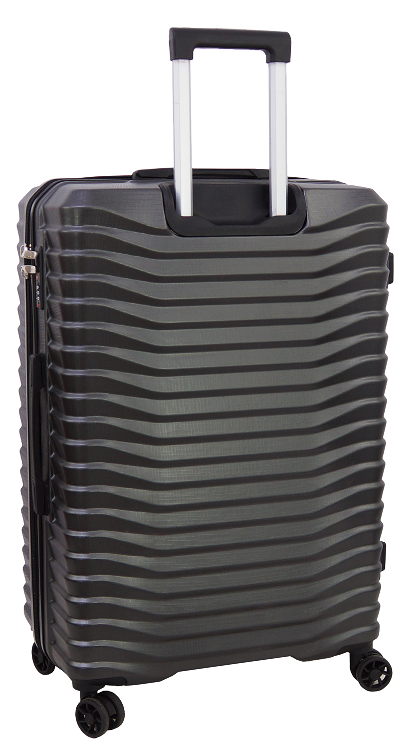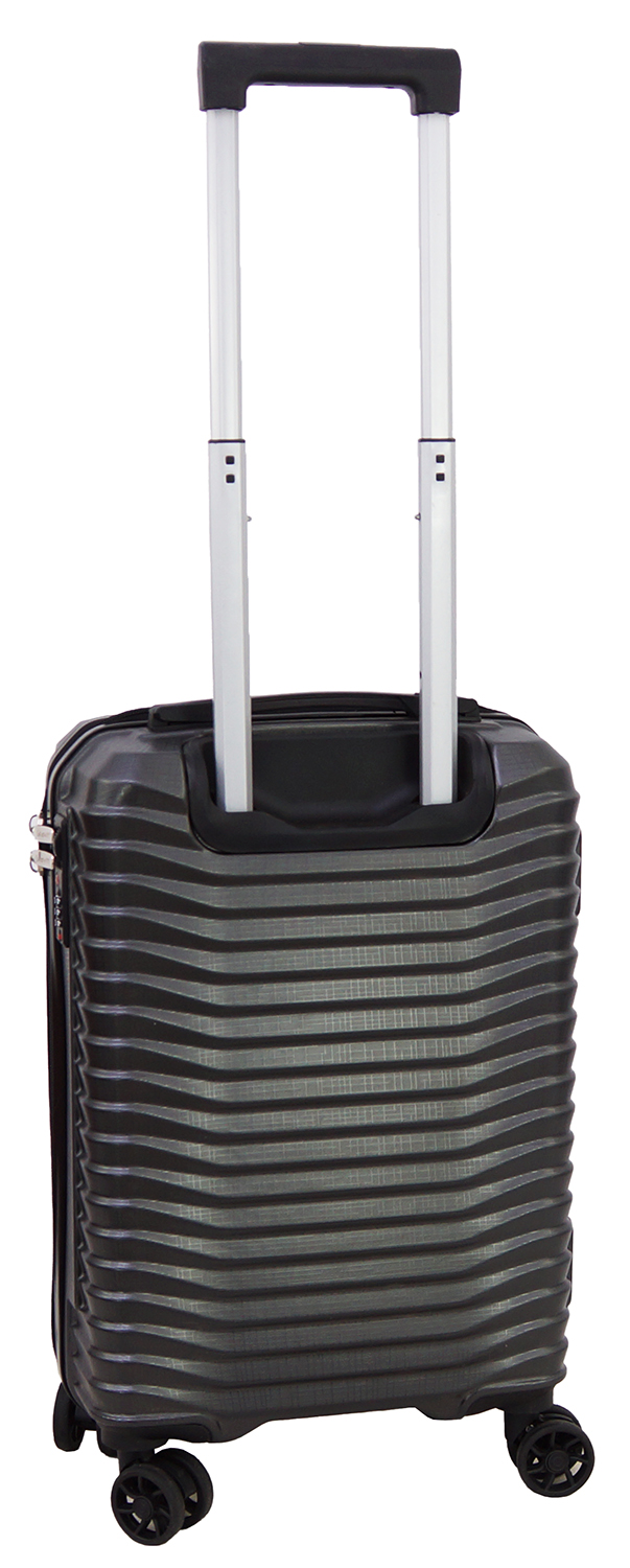 - wymiar zewnętrzny obejmuje wszystkie wystające elementy walizki: kółka, stopki, zamek szyfrowy, uchwyty do przenoszenia, ale nie obejmuje wysuwanego stelaża.