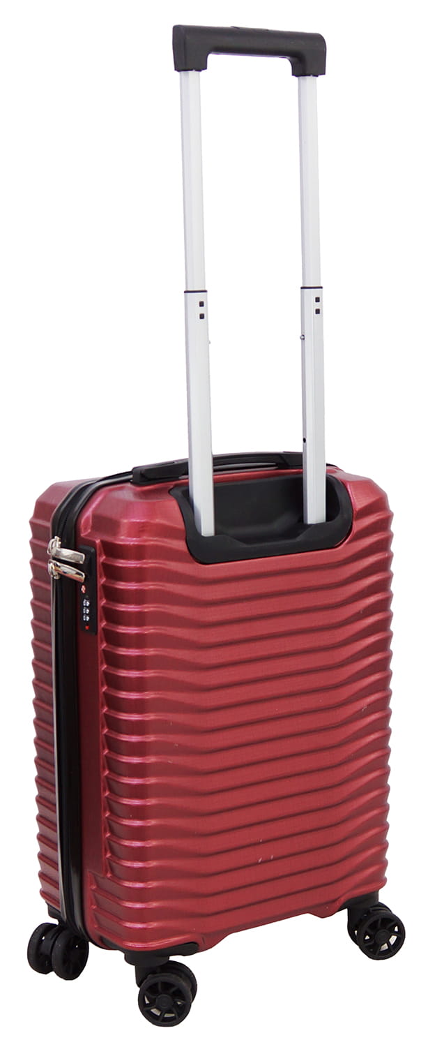 - wymiar zewnętrzny obejmuje wszystkie wystające elementy walizki: kółka, stopki, zamek szyfrowy, uchwyty do przenoszenia, ale nie obejmuje wysuwanego stelaża.