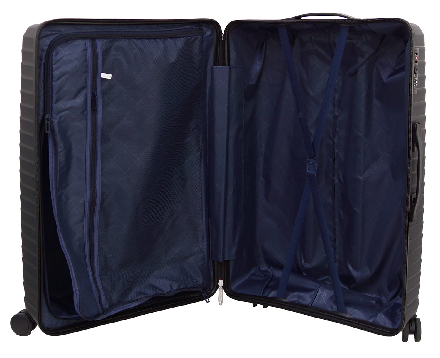 - wymiar zewnętrzny obejmuje wszystkie wystające elementy walizki: kółka, stopki, zamek szyfrowy, uchwyty do przenoszenia, ale nie obejmuje wysuwanego stelaża.